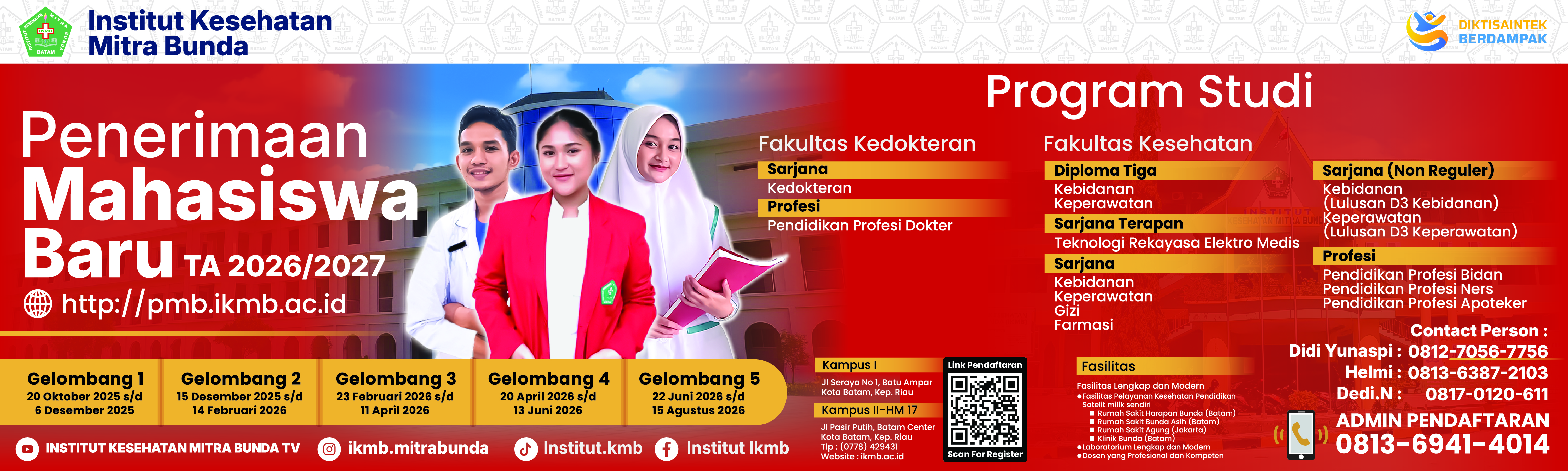 Pertajam pengetahuan, asah keterampilan, dan bentuk karakter bersama kami. Pelajari lebih lanjut mengenai cara pendaftaran serta biaya di Institut kesehatan Mitra Bunda.