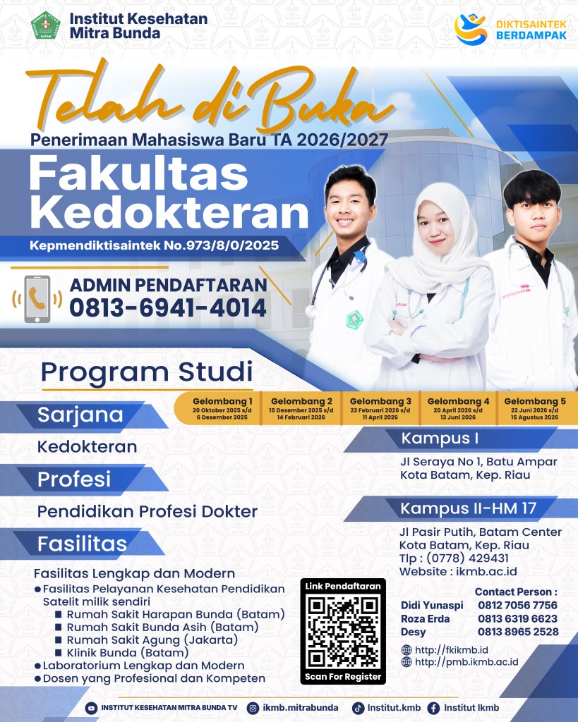Pertajam pengetahuan, asah keterampilan, dan bentuk karakter bersama kami. Pelajari lebih lanjut mengenai cara pendaftaran serta biaya di Institut kesehatan Mitra Bunda.